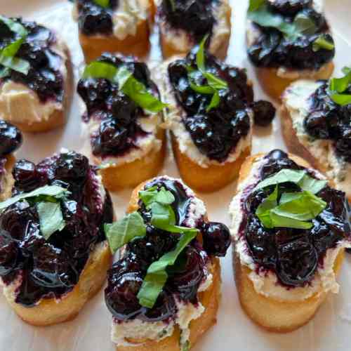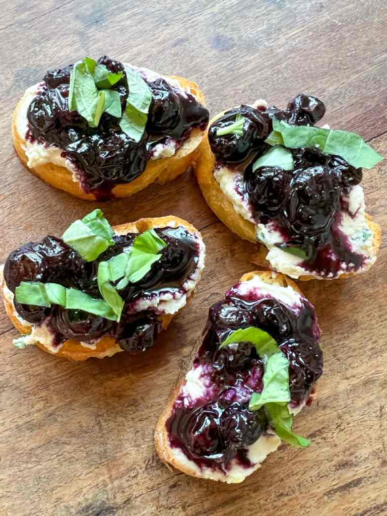 Blueberry Balsamic Crostini with Basil Cashew Ricotta