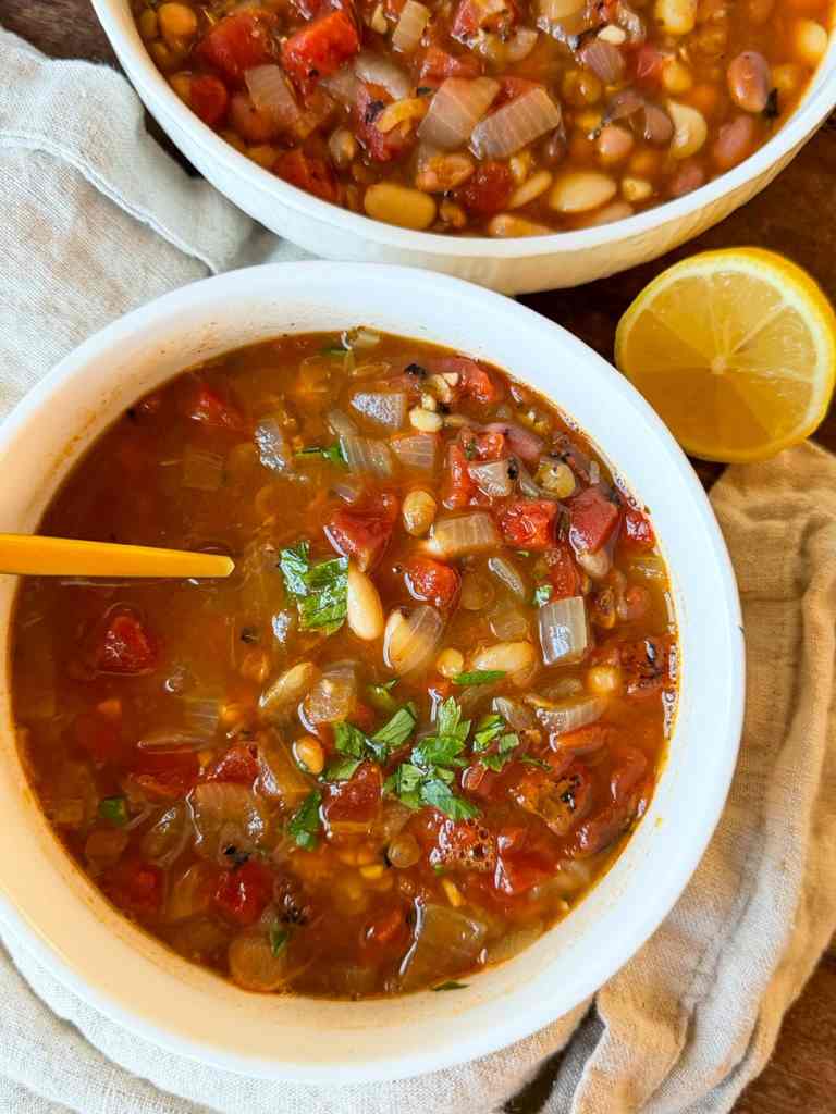 Hearty Vegan 15-Bean Soup with Tomatoes: A Big Bowl of Cozy, Plant-Powered Goodness