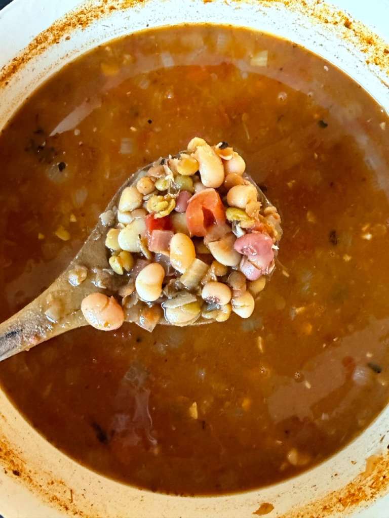- Simmer Low and Slow: Bring the soup to a boil, then reduce the heat to low. Cover and simmer gently for 2½–3 hours, stirring occasionally, until the beans are tender and the broth has thickened.