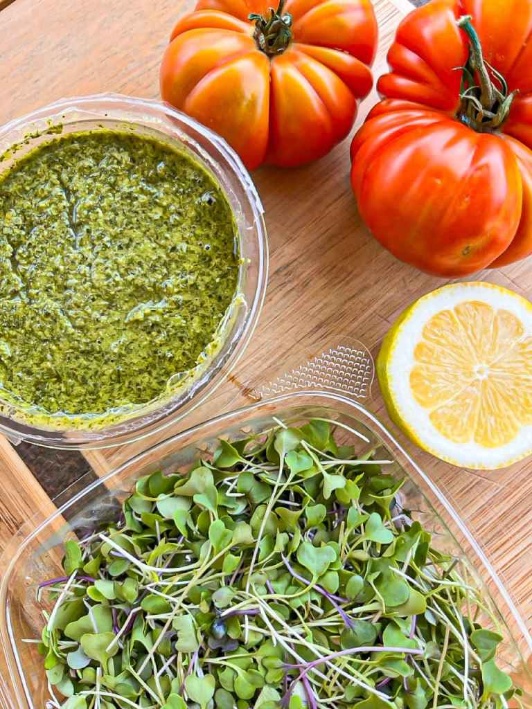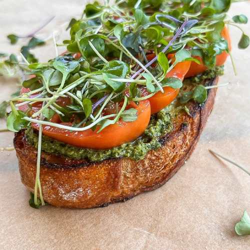 Crispy bread, juicy heirloom tomatoes, fresh pesto, and microgreens come together for a quick, fresh bite that tastes like sunshine. Give it a try and tag me on Instagram @madly__delicious with #MadlyDelicious to share your take!