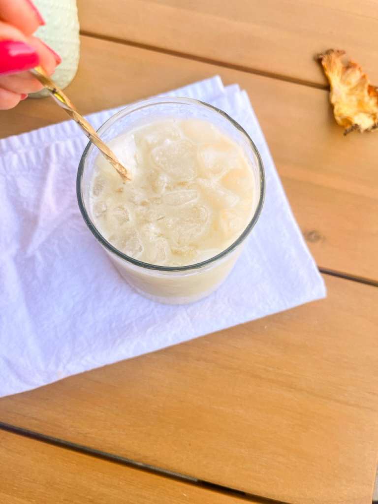 I had a version of this Piña Colada Mocktail at this pizza spot here in San Diego and became totally obsessed. It was tropical, creamy, and just sweet enough—and I knew I had to recreate it at home. After playing around with the ratios, I landed on this mix with just a little extra pineapple juice for that perfect, sunny sweetness. The best part? No shaker, blender, or fancy tools required. Just stir it all together, pile on the crushed ice, and sip away. I even dried a few pineapple slices to pop on top. It’s easy, fun, and feels like summer in a glass!