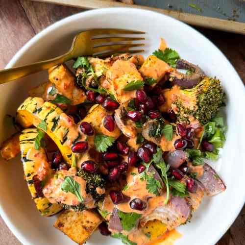 A hearty mix of roasted broccoli, squash, tofu, and a spicy-creamy drizzle that ties it all together. Give it a try and tag me on Instagram @madly__delicious with #MadlyDelicious to share your take!